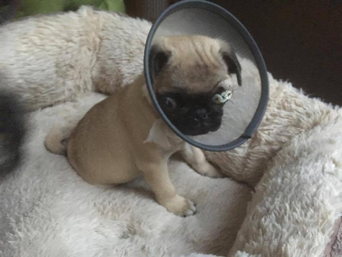 Mein Auge wurde notfallmäßig erst mal in einer Tierklinik versorgt und zur Heilung zugenäht. Das kann am Ende dieser Woche wieder geöffnet werden und man kann sehen, ob das Auge heilt...also ich gebe mir viel Mühe!!!