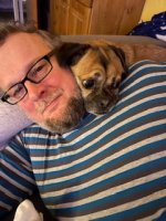 Auf dem ersten Bild bin ich mit meinem Pflegepapa, ich liebe es zu kuscheln